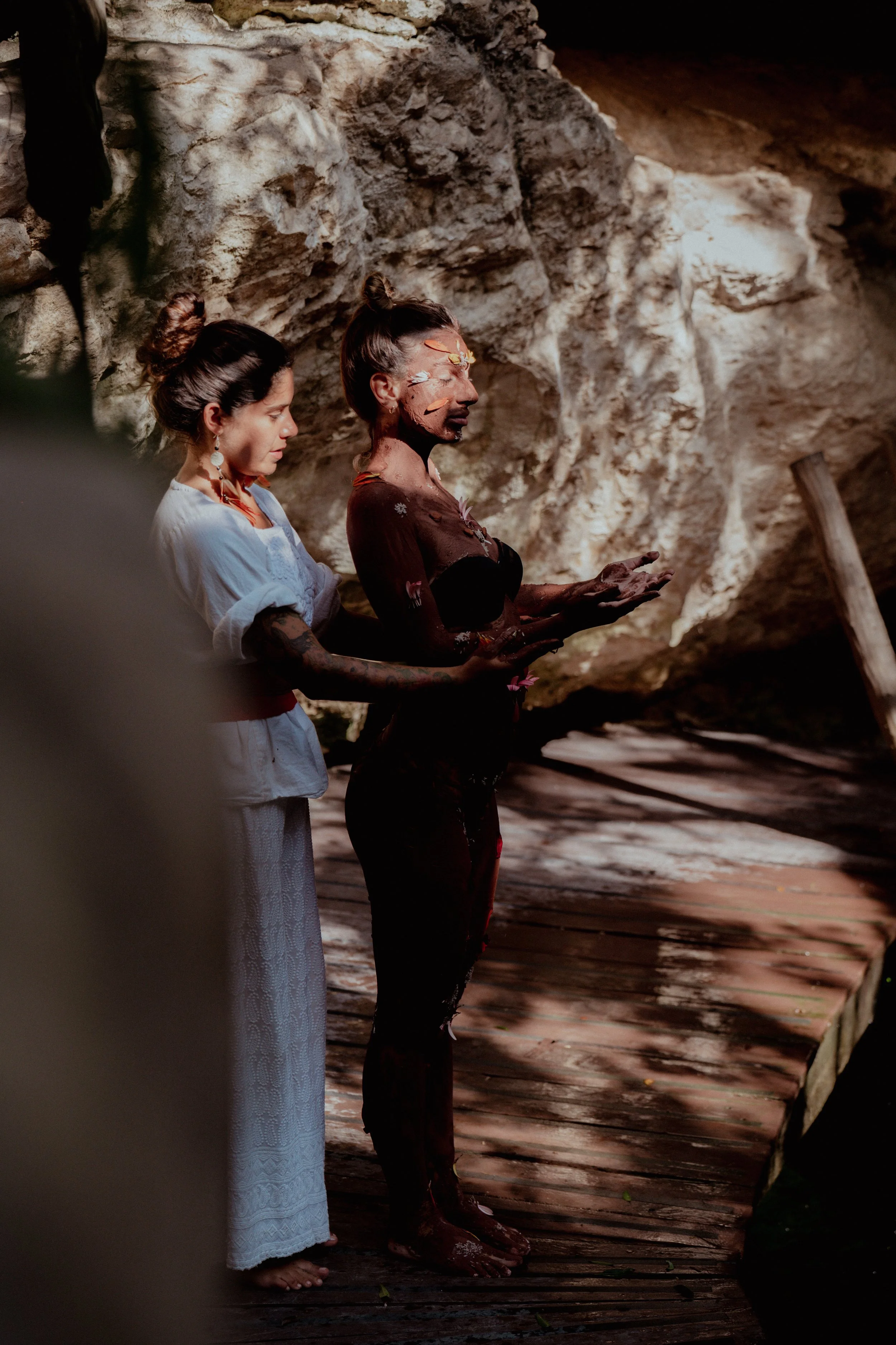We work with touch, ritual, sound, breath, and presence — always adapting the experience to where you are in that moment.
